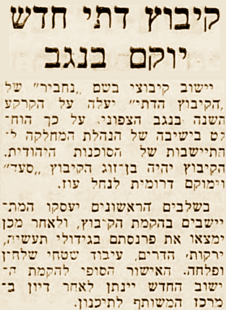 דתי חדש יוקם בנגב", הצפה, 8 ביוני 1965.
