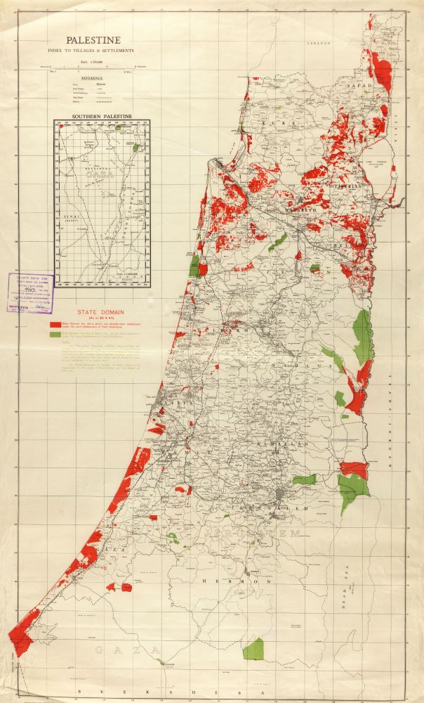 בנגב עד הקמת המדינה משתקף בכתמי הצבע האדום באזור זה. KL5M\7463))