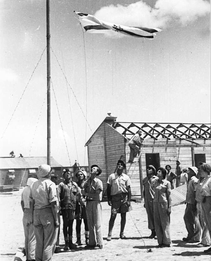 הדגל ביום העלייה על הקרקע של קיבוץ סעד, יוני 1947 (PHG\1064891)