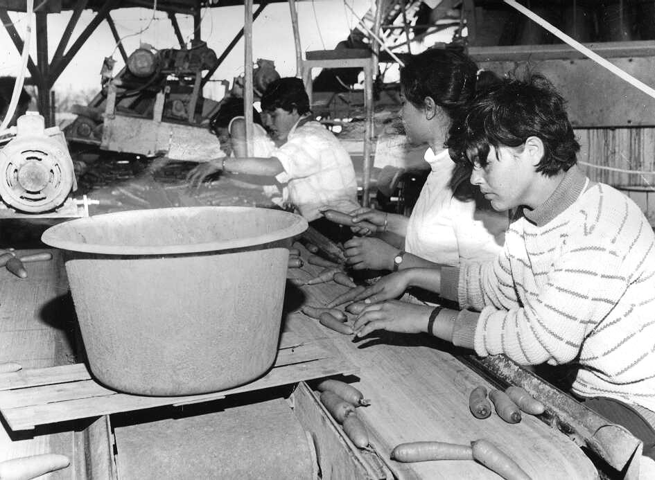 בשנים הראשונות גידול הגזר חייב גיוס הרבה ידיים עובדות: הגזר גדל בערוגות