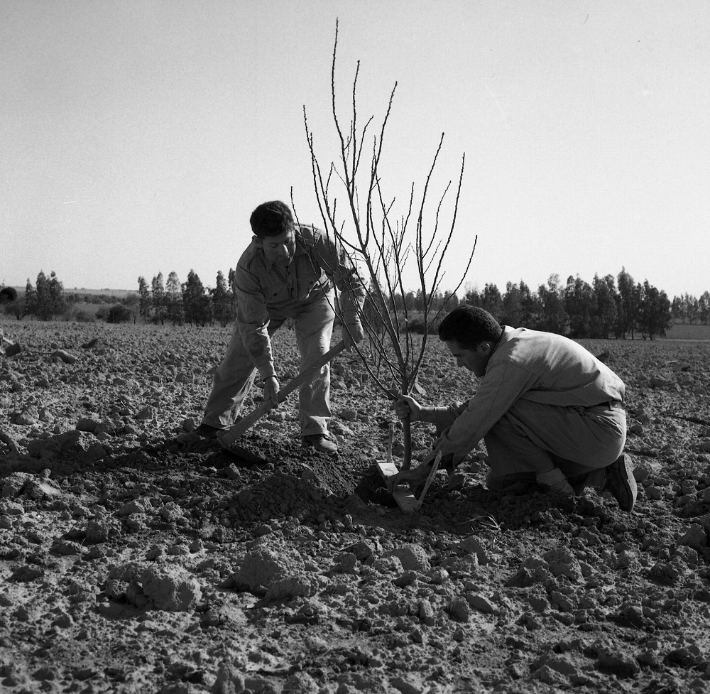 נטיעת העצים כחלק מביסוס המשק החקלאי בשנים הראשונות בנירים (NPS\280706)