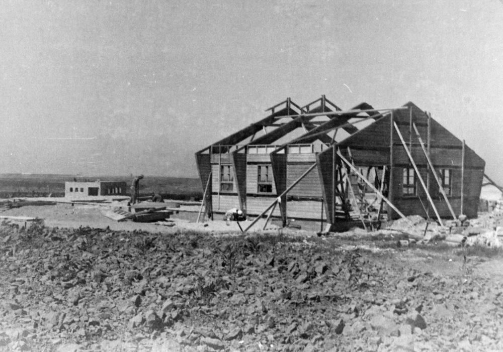 קיבוץ נירים בתנופת בנייה, 1951 (משוער). מארכיון יוסף ויץ, ראש מינהל מקרקעי ישראל (PHYW\685946)
