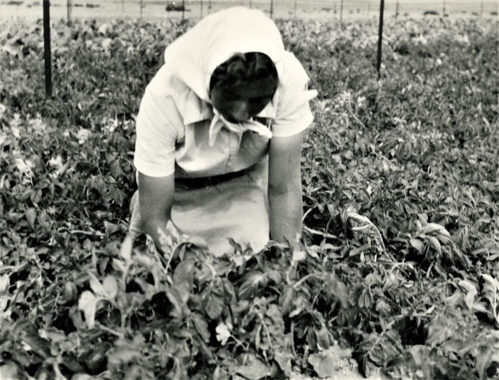 איסוף ידני של תפוחי אדמה במושב מסלול בנגב, 1954. צלם: זולטאן קלוגר,