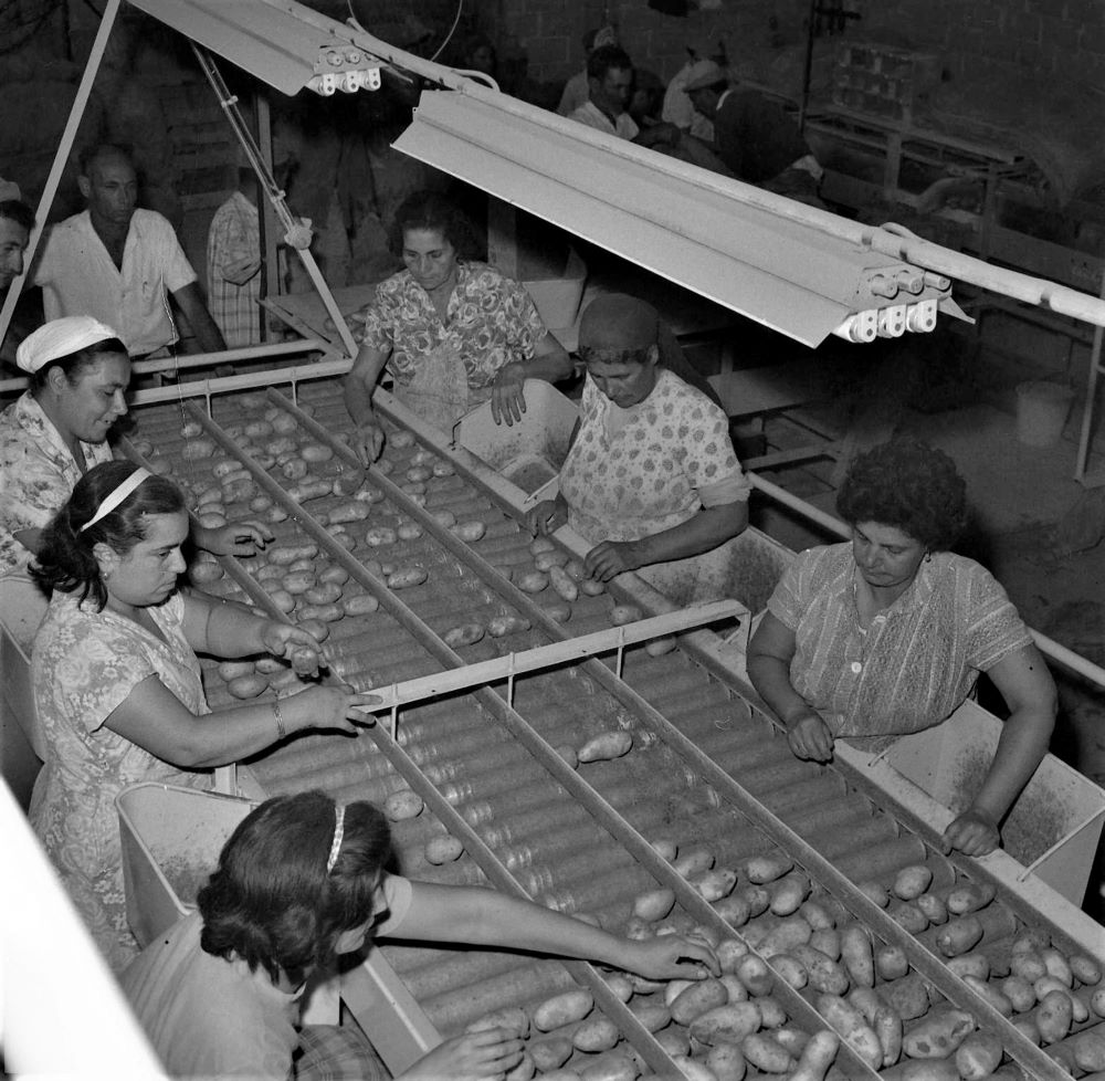 מלאים ולהעמיס אותם על עגלה. בשנים הראשונות היו ממיינים את תפוחי האדמה בידיים, תחילה