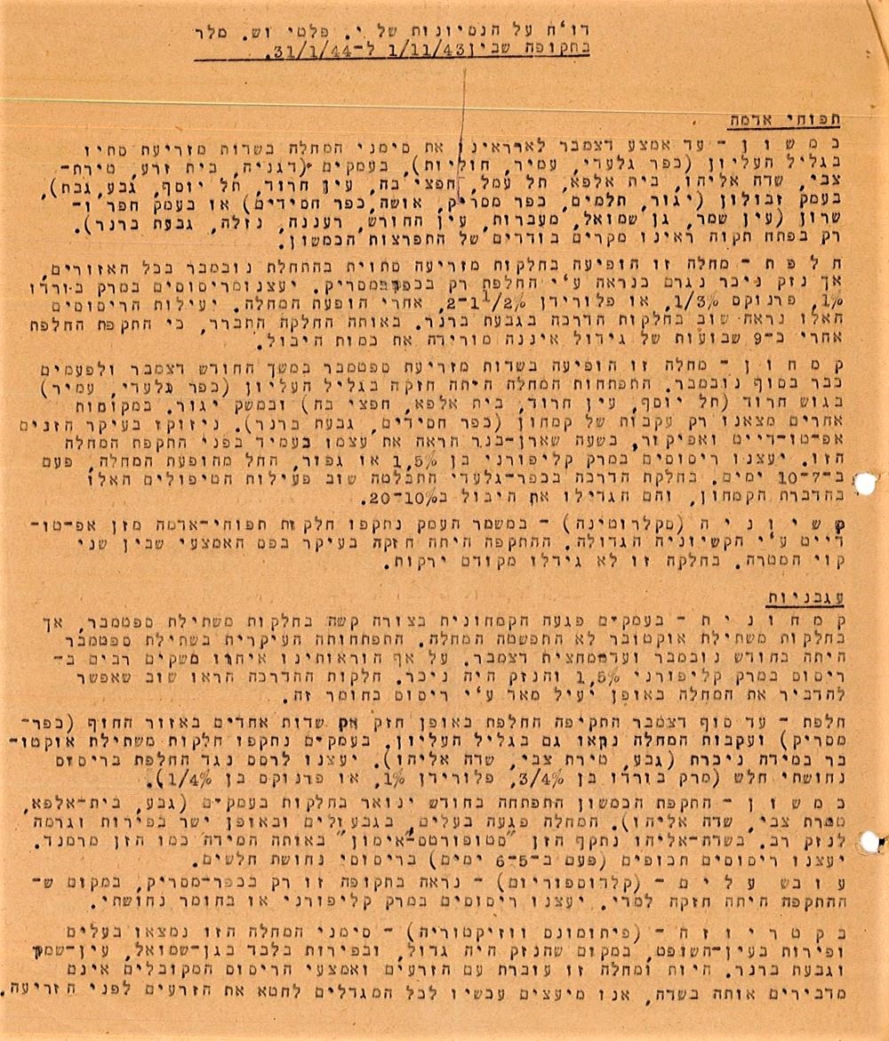 דו"ח של המדריכים החקלאיים שמואל מלר ויוסף פלטי על ניסיונות בגידול