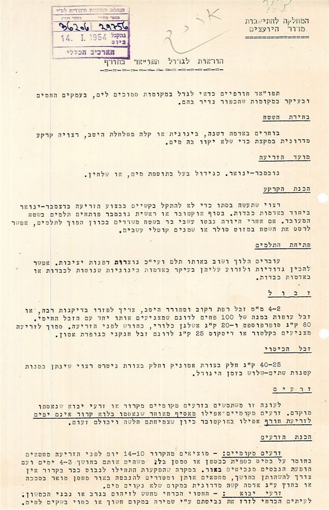 הוראות לגידול תפוחי אדמה בחורף מטעם המחלקה להתיישבות: