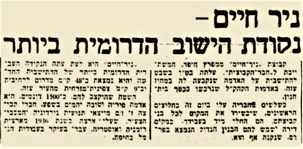"נקודת הישוב הדרומית ביותר" – על העלייה על הקרקע של קבוצת ניר חיים,