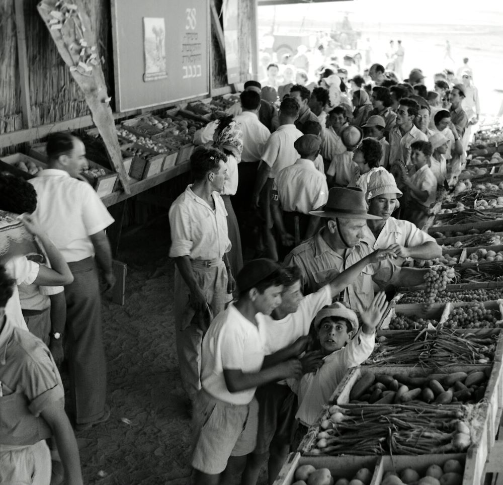 מבקר בדוכנים, המציגים את תוצרת הנגב. אוסף קרן היסוד (NKH\477269)
