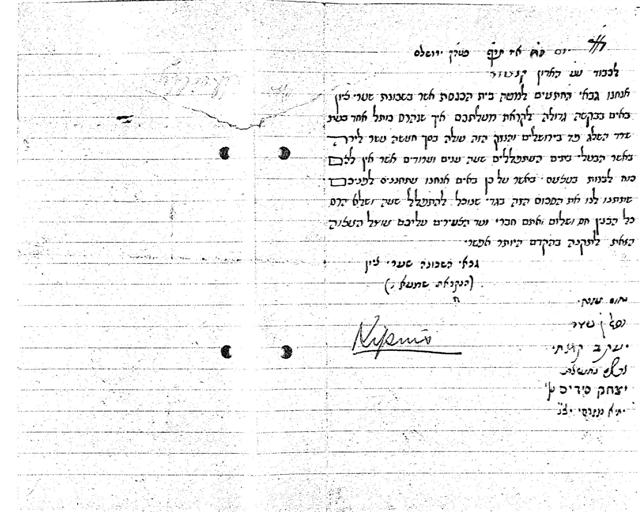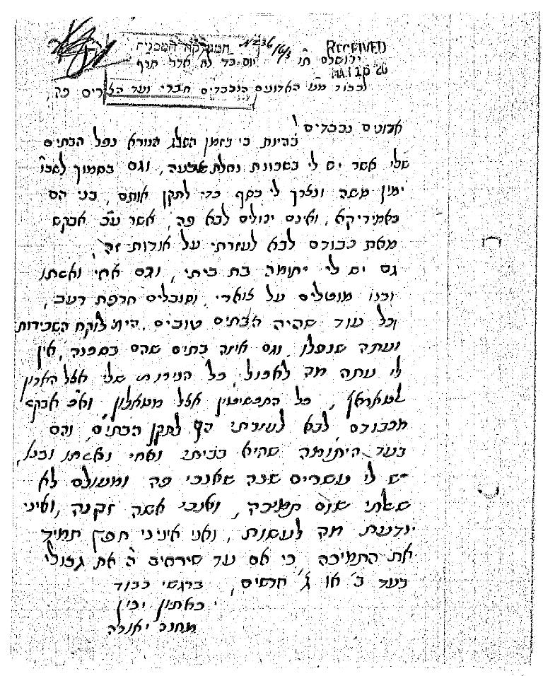 במכתב שנשלח לוועד הצירים ב- 1920, מגוללת תושבת ירושלים כיצד מקור פרנסתה נפגע בסערת השלגים: "בהיות כי מזמן השלג הנורא נפל הבתים אשר לי בשכונת נחלת שבעה... וכל עוד שהיו הבתים טובים הייתי לוקח השכירות..." הכותבת מספרת על המצב הקשה אליו נקלעה מאחר שאינה יכולה עוד לגבות את דמי השכירות: "אין לי עתה מה לאכול", ובנוסף, "יש לי יתומה בת ביתי וגם אחי אשתו ובנו מוטלים על צווארי". היא מציינת ש"מעולם לא שאלתי שום תמיכה", אולם חרפת הרעב חזקה מחרפה של בקשת נדבה, והיא מבקשת מוועד הצירים לסייע לה במימון הוצאות השיפוץ.